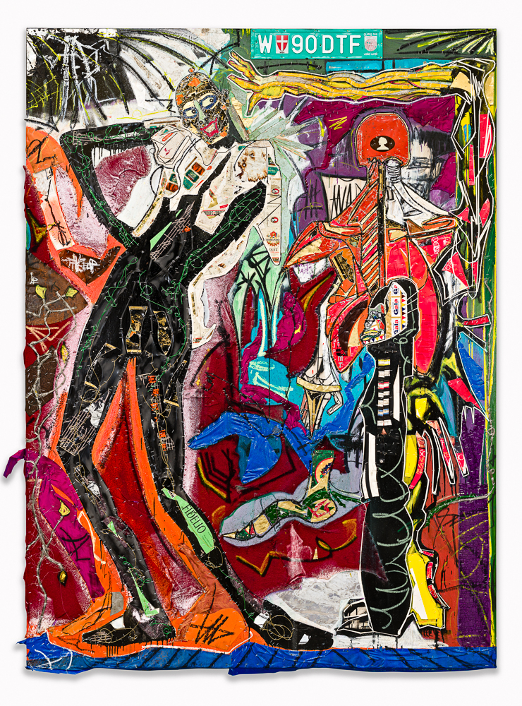Diop’s practice exists in a space between drawing, painting, and sculpture, oscillating between figuration and abstraction. His references allude to a deep intellectual framework that forms an integral layer of his work. Defying immediate definition or categorization, his compositions uphold the essence of creativity while conceptually interrogating artistic expression. Acting as multilayered narratives, Diop’s works delve deeply into his own experiences, alongside broader observations and interpretations of the world.